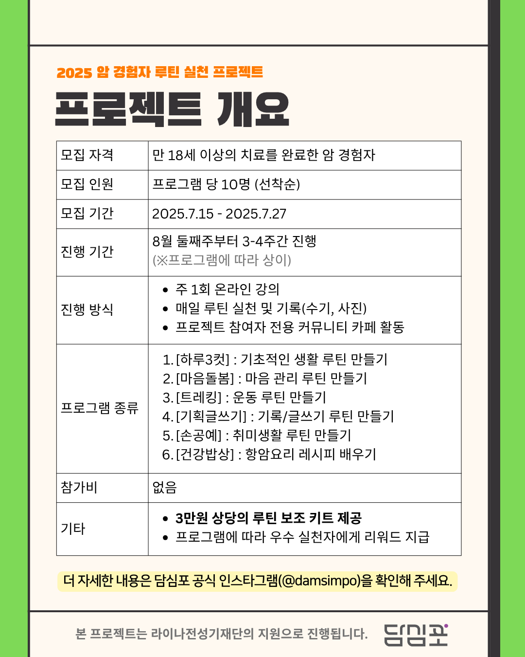 2025 암 경험자 루틴 실천 프로젝트 모집 시작~!