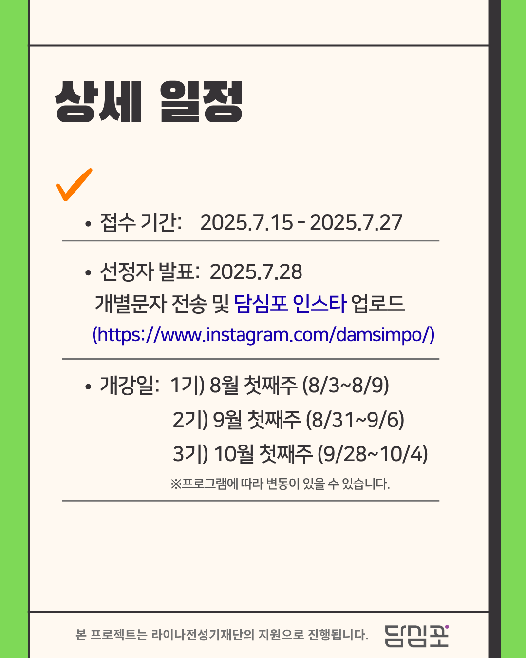※ 문의사항은 damsimpo@naver.com 또는 031-848-4929