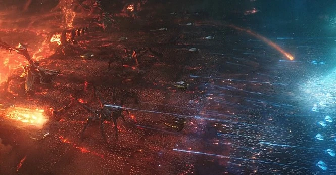 영화 초반 아탈라나 여왕의 액션이나 중반부 시칠리아 섬에서의 액션에서 알 수 있듯 <아쿠아맨>의 액션 시퀀스는 씬들이 길다. 롱테이크를 통해 액션의 시작부터 끝 까지를 모두 느끼게 하는 연출인데, 롱테이크가 아닌 씬들조차 패닝과 틸팅을 활용한 씬들인 경우가 많다. 다만 롱 테이크는 속도감이나 리듬감을 구현하는 데는 어려움이 있을 수도 있는데, 제임스 완은 이마저도 카메라의 원근을 빠른 속도로 큰 변화를 주면서 극복해낸다. 여기에 DC 특유의 슬로 모션이 곁들여지면서 <아쿠아맨>의 액션은 마블과 DC 양쪽 모두로부터 차별화되었고, 이 점이 영화의 호평을 이끌어낸 가장 탁월한 선택이지 않았나 싶다. 물론 후반부에 펼쳐지는 대규모 전투 씬은 이러한 카메라 워킹 필요 없이 히어로 영화를 뛰어넘는 그 스케일만으로도 탁월한 쾌감을 선사한다.