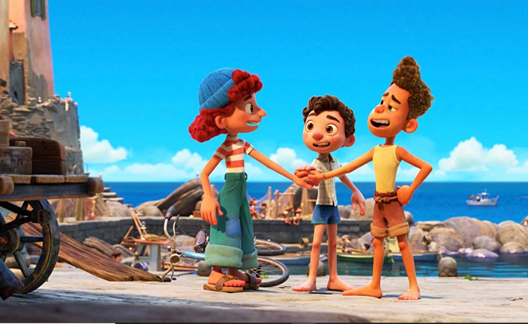 물론 픽사의 전작들과 비해 <루카>의 완성도는 더러 아쉬움이 남는다. 우선 루카가 인간과 지상 세계에 대한 생각을 바꾸어 나가는 과정을 기발하고 세심하게 묘사한 것에 비해 그의 주변 인물들이 인식을 바꾸는 과정은 지나치게 단순하다. 철인 3종 경기를 기점으로 루카의 가족들, 친구들, 마을 사람들은 서로를 향한 적개심을 누그러뜨리는데, 이 과정은 픽사가 흔히 보여주는 반전 없이 예상대로 평이하게 전개된다. 그러다 보니 애니메이션 영화임을 감안하더라도 결말에서 맥이 풀리는 것을 막을 길은 없다. 또한 통상적으로 픽사 영화 속 주인공이 여러 곳을 돌아다니며 모험을 펼치는 것과 달리 주인공이 특정 장소에 적응하는 이야기를 다루다 보니 미야자키 하야오의 느낌이 짙어진 것도 사실이다.