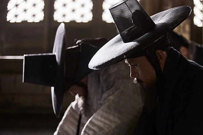 3. 작중 '무력함'은 김상헌과 최명길의 대사를 통해 '절박함'으로 이어진다. 이 절박함은 김상헌(김윤석)과 최명길(이병헌)의 대사와 대립을 통해 형상화된다. 역사가 스포일러지만, 두 인물의 대립은 강력한 서스펜스를 만들어내기도 한다. 마치 법정 드라마를 보는 듯 빠르게 치고받으면서 이어지는 김상헌(김윤석)과 최명길(이병헌)의 대사는 역사를 아는 관객들과 영화 속 인물들의 관계 속에서 정보의 차이를 만들어내며 극적 효과를 가져다주는 것이다.
