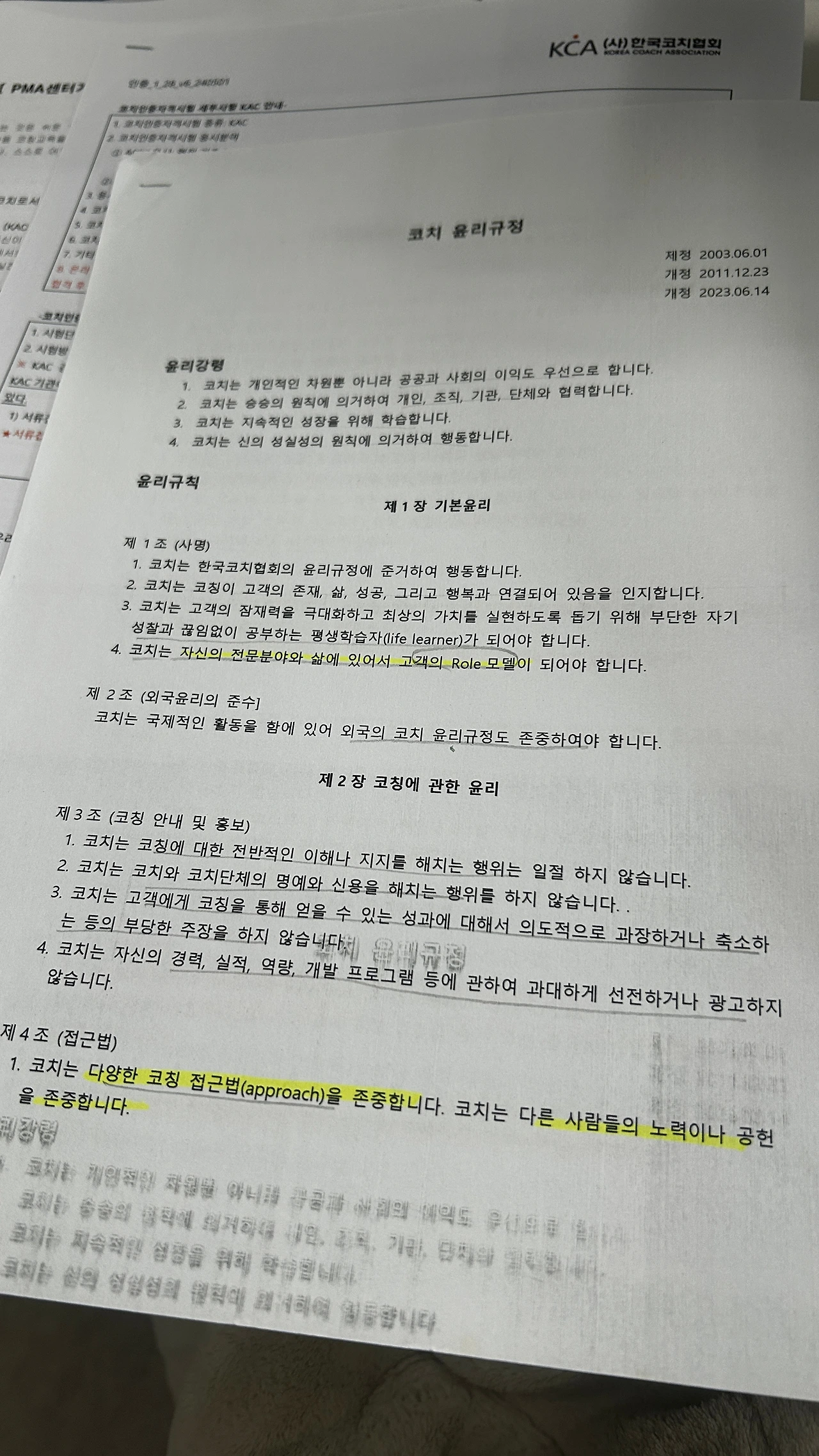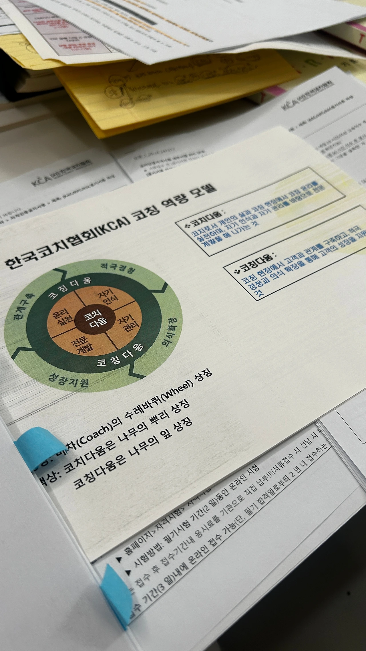 코칭 자격증은 한국코치협회에서 주관하는 자격증이며, 여러 단계가 있는데, 처음에는 KAC라는 1단계 자격증을 위한 기본 tool을 배운다. 서류와 면접이 진행 되며, 각각 요구되는 기본 사항이 있어서 이를 위한 준비를 한다.