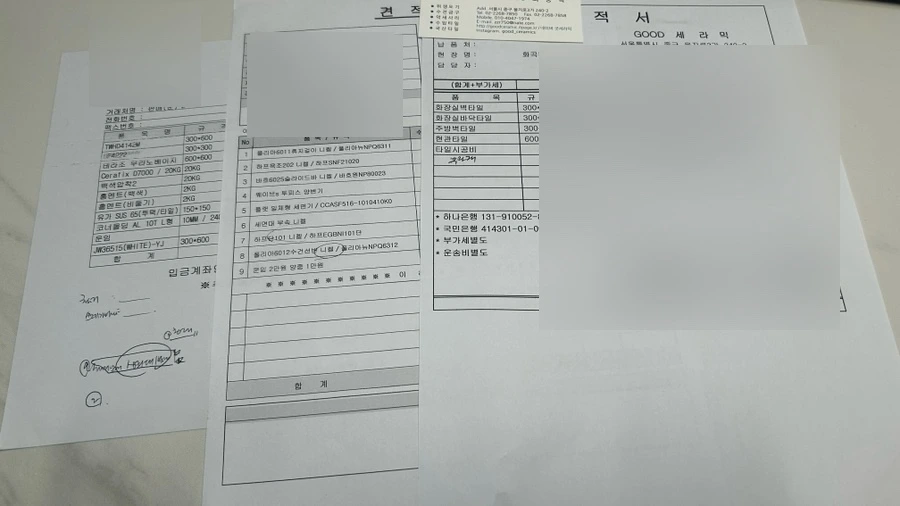그리고 마지막으로 여러 사람들이 함께 하는 작업이기에 중간에 문제가 생길 수도 있고, (우리집은 욕실에서 붙여놓았던 세면대가 떨어지면서, 재시공을 하는 일이 발생하였다. 추가 인건비가 발생하였다...)