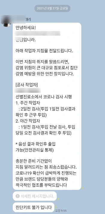 먹는 것, 모이는 것 모두가 제한되었다. 백화점, 마트의 디스플레이 작업 일정은 그대로였다. 다만 이런 통지가 왔다. 선별진료소 검사 결과 음성 확인이 하루 전이어야 한다는 것!
