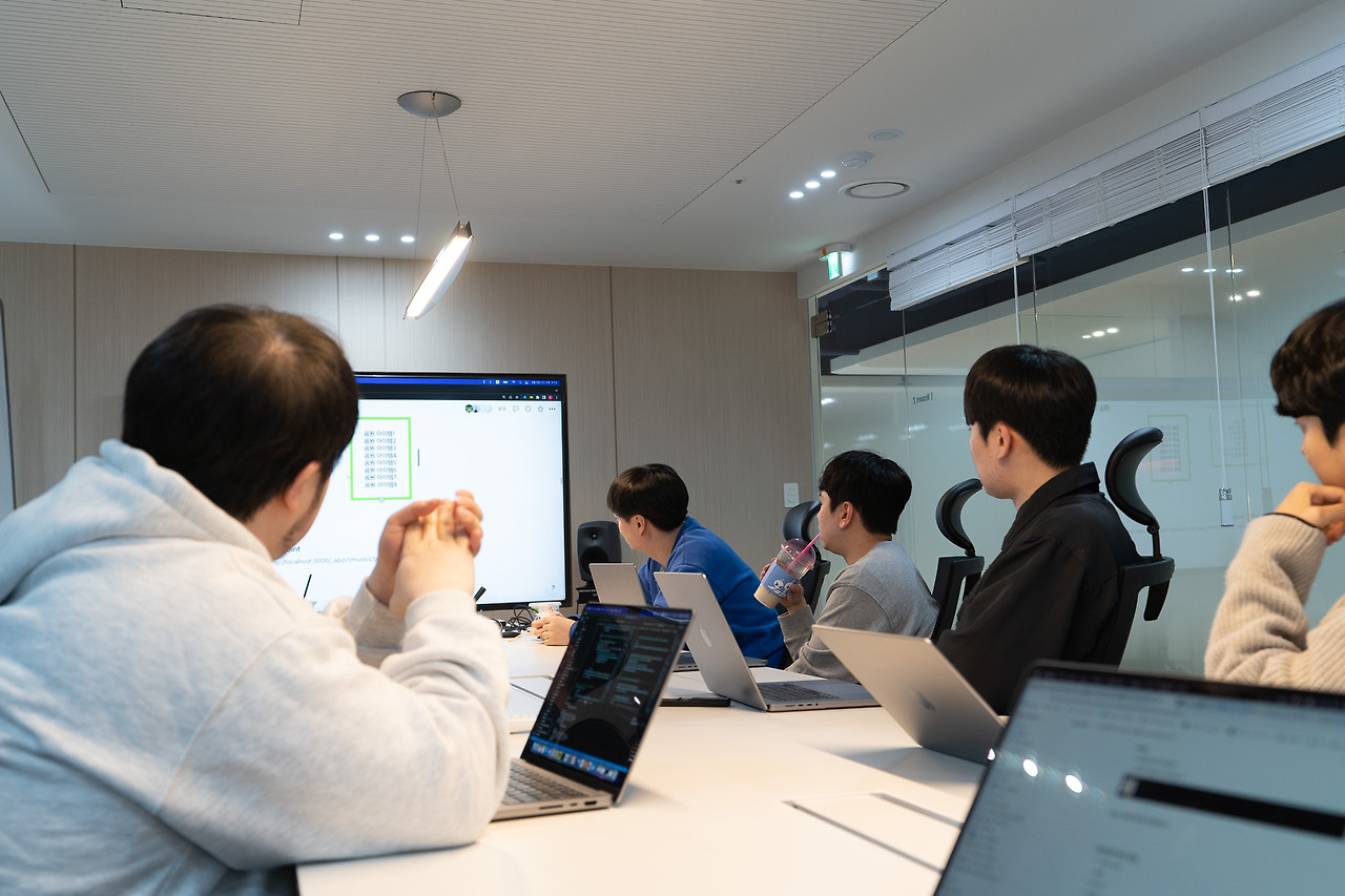 업무 공간 한쪽에는 기업부설연구소가 있습니다. 인공지능 팀원들은 이 독립된 공간에서 일하고 있지만, 다른 팀원과 '함께' 일하는 느낌을 받을 수 있도록 막힌 벽이 아닌 투명한 유리로 만들었어요.