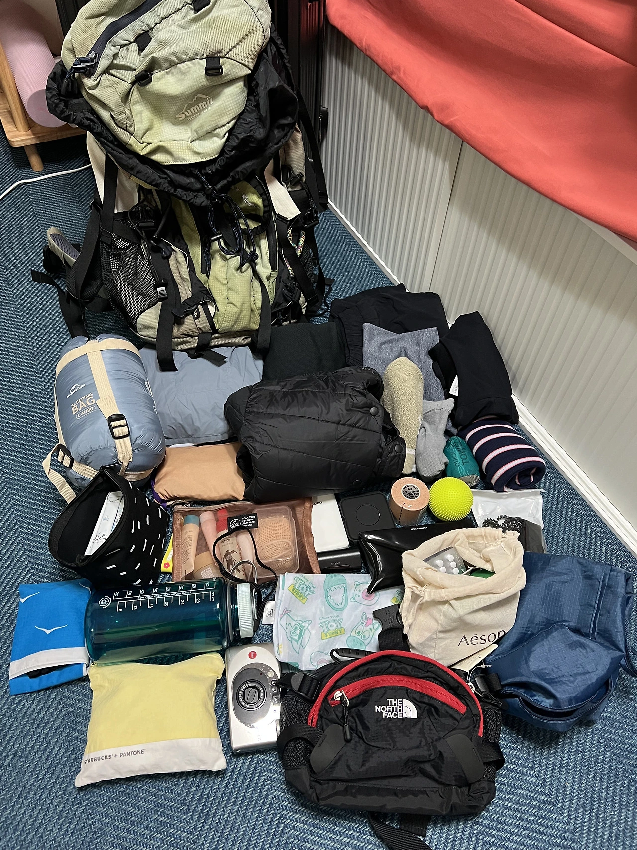 - 결말을 미리 공개하자면, 짐을 줄이고 줄여 가방이랑 물 1L까지 포함해서 8kg정도 였는데... 이틀만에 어깨끈이 끊어짐^^