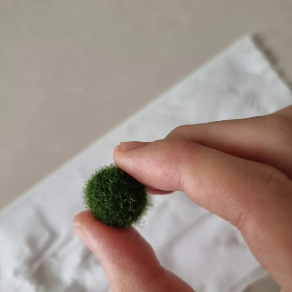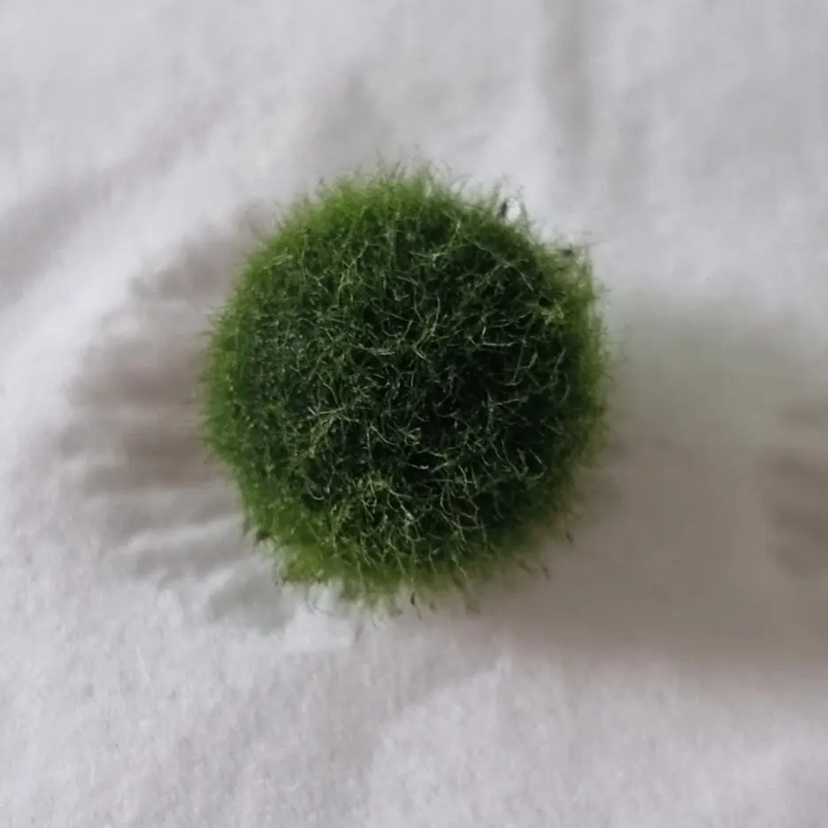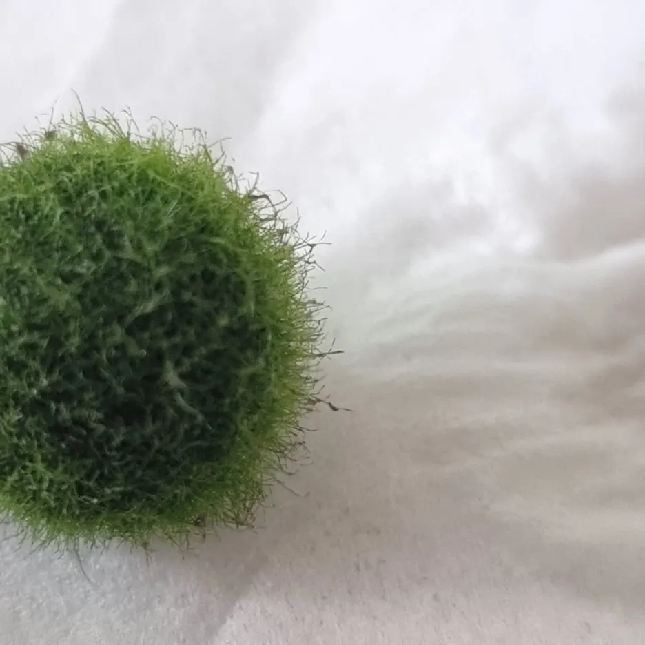 가짜 마리모에 비해 포슬포슬 털이 올라와 있다.