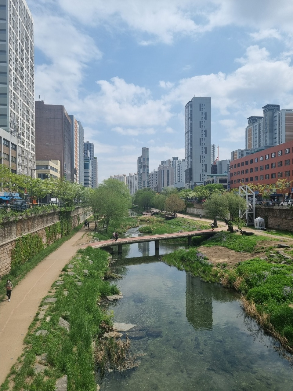 나는 그 공백기간 동안 동네를 산책했고, 자전거를 타기도 했다. 하루는 계획 없이 산책길을 걷다가 우연히 곁가지로 뻗어 올라가는 실계천을 발견한 적이 있었다. 그곳엔 봄이면 장미꽃이 흐드러지게 폈고 여름이면 풀숲이 무성하게 자랐다. 그곳에는 오리 가족이, 왜가리와 백로가, 잉어들이 살았다. 낮에는 유치원생들이, 화단을 손질하는 작업자들이, 점심시간의 여유를 즐기는 직장인들이 있었고 밤에는 퇴근하고 나온 가족들, 강아지들, 러닝 하는 사람들이 있었다.