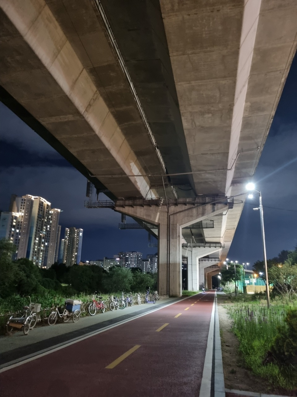 하루는 이 길이 어디까지 이어져있나 궁금해서 그저 앞으로만 달렸던 적도 있었다. 그랬더니 어느 순간 갑자기 고가도로 밑으로 난 널찍한 자전거 길이 나왔다. 고가도로를 떠받치고 있는 거대한 기둥들이 굉장히 묵직하고 위압감 있었다. 마치 거대한 기둥들이 세워져 있는 신전 같았달까.