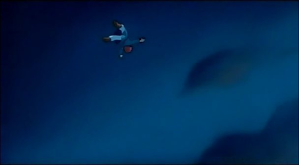 소형 비행기 '메베'를 타고 이곳저곳을 날아다니는 단발머리 소녀, 나우시카. 그녀는 뛰어난 비행 능력을 가지고 있다. 여기저기서 발사되는 탄알도 요리조리 피하고, 곤경에 처한 사람이나 오무를 구하기도 하고, 심지어는 구름을 뚫고 성층권까지 날아다닌다. 추락하는 비행기에 탄 사람들을 안심시키기 위해, 비행기를 발로 조종하며 짐짓 미소를 지어 보이는 모습은 정말 압권이다. (그런데 나우시카의 펄럭거리는 치마 속이 보이는 샷을 영화는 왜 이리 많이 보여줄까? 의문이다.)