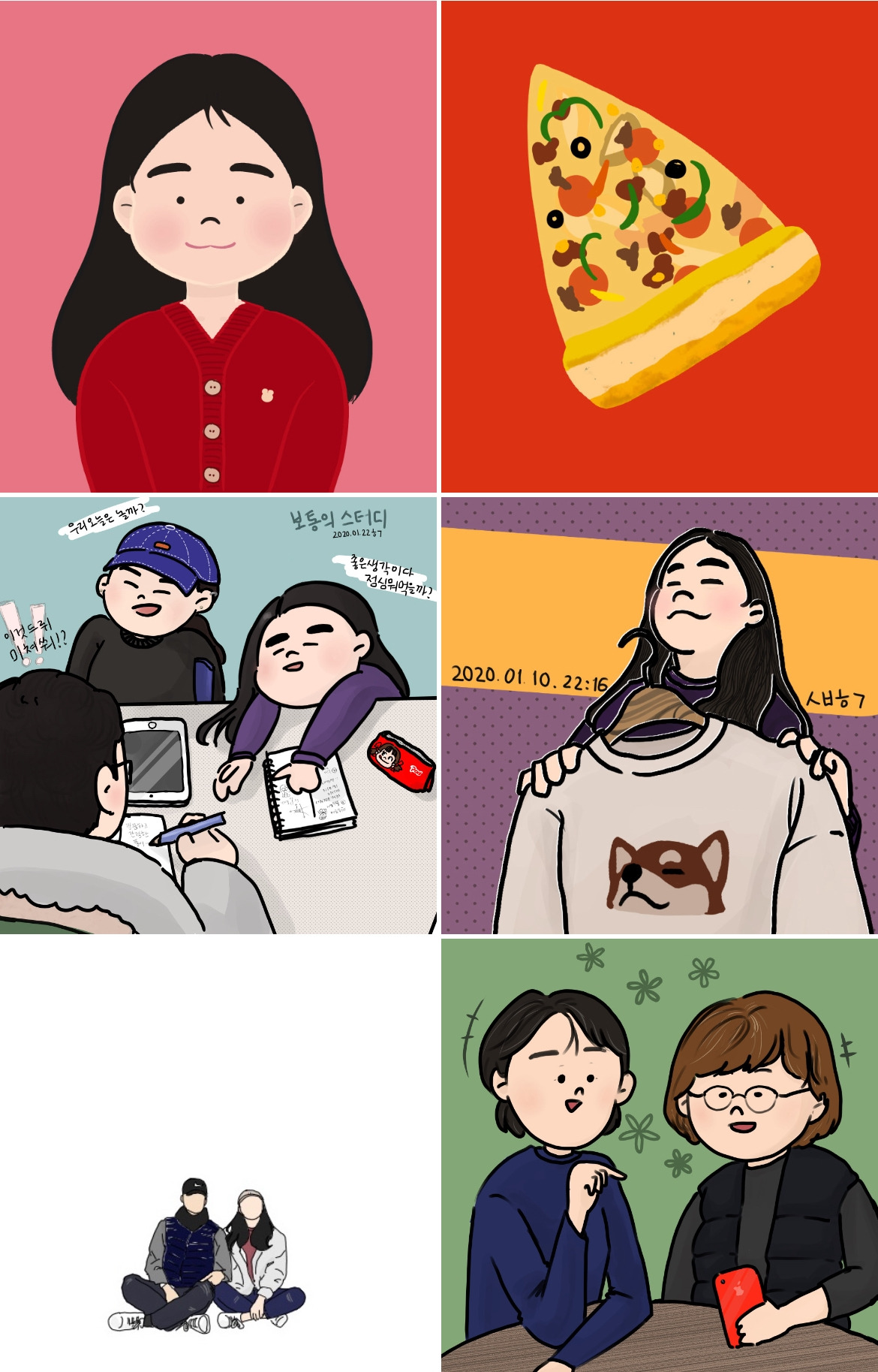 나는 그림그리기도 좋아했다. 초등학생 땐 무지 연습장에 만화를 그렸다. 유명 아이돌이 빡빡한 스케줄에 시달리다 회사에서 몰래 도망친다. 그러다 누군가와 부딪히고 기절. 깨어나니 그 남자의 집. 남자는 연예계에 무심해 여자가 누군지 몰랐다. 기절한 여자를 어찌해야할 지 몰라 집으로 업어왔고(이미 큰일날 설정), 여자는 자기를 숨겨달라며 동거하는.. 그런 흐름의 스토리로 만화를 그렸다. 그림을 좋아하던 초등학생은 중학생이 되어 좋아하는 만화의 팬아트를 그렸다(코난이다!). 팬카페에 가입하여 그림을 올리고 더 잘그리는 누군가를 보고 잔뜩 부러워하는 댓글을 달았다. 대학생이 되어서는 연인과의 추억을 그림으로 그렸다. 캐리커쳐를 그려주기도 했다. 아이패드가 생긴 뒤로는 종이에 그리던 걸 패드에 옮겨 그렸다. 그렇게 이어져오던 그림그리기는 누군가가 내게 취미를 물었을 때 떳떳하고 당당하게 말할 수 있는 자부심이었다.