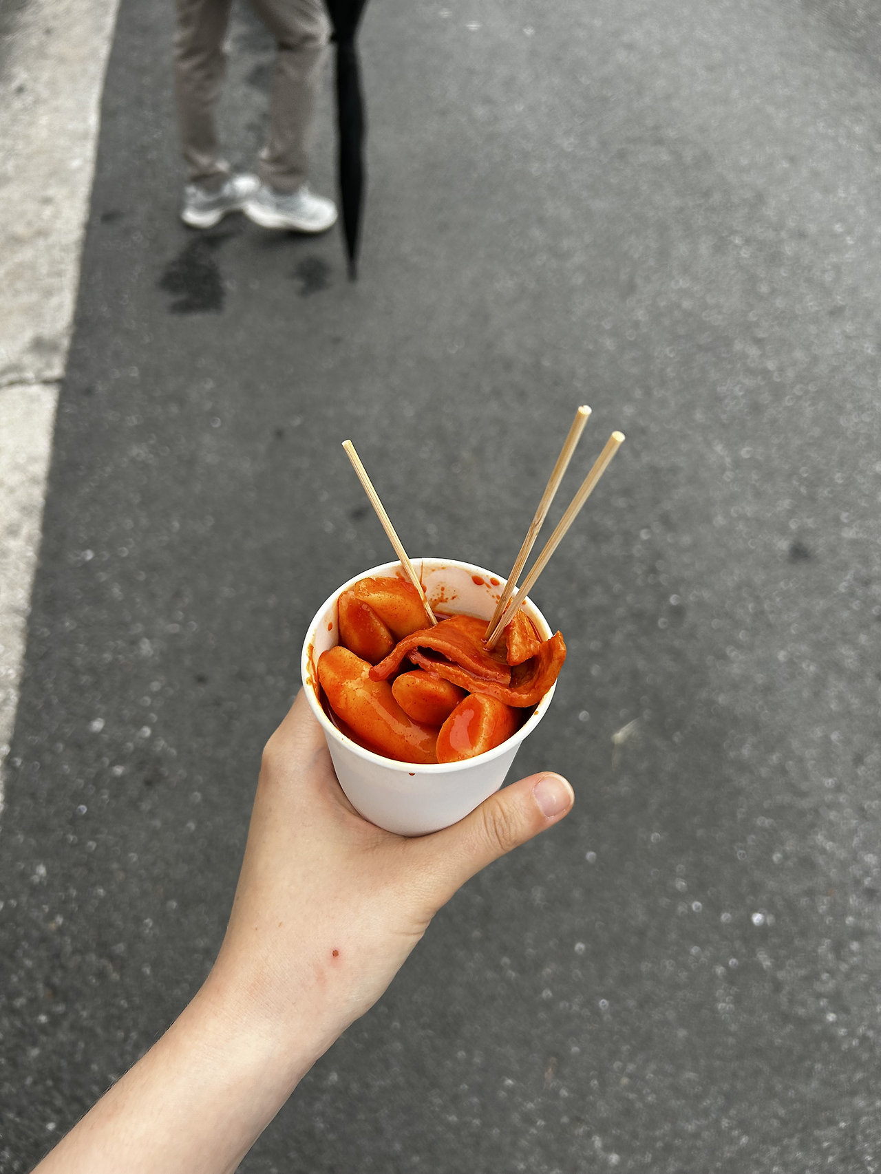 오랜만에 고향 동네에 찾았다. 마트 자리엔 편의점이 생겼고, 단골 닭갈비집은 빵집으로 바뀌었다. 다녔던 초등학교 근처 떡볶이 집은 여전했다. 당시 처음 생겼을 때에는 센스있고 깔끔했던 간판이 세월에 닳아 너절해졌다. 둥글둥글 귀여웠던 상호는 어딘가 촌스럽게 느껴졌다. 주인 아주머니는 바뀌지 않으셨다-고 들었다. 사실 난 전혀 기억나지 않는데, 동생과 엄마만이 아주머니를 알아보시고, 여전하시네- 오히려 더 젊어지셨는데?- 등의 대화를 나눴다. 그러니까 아마 똑같은 분이실거다. 요새는 보기 힘든 컵떡볶이를 여전히 팔고 있었다. 그 맛만큼은 여전해서, 달콤하고 달큰해서, 어린아이 입맛에 딱 맞았다. 어렸을 때 내가 좋아하던 그 맛 그대로 밀떡은 쫄깃하게 끊어졌고, 잔뜩 맵게 생겨선 하나도 안매웠다. 내 손안에 쏙 감긴 종이컵에서 얇은 나무꼬챙이로 떡 하나를 찝어, 길 걸어가며 후루룩 떡을 빨아들이고 쫄깃하게 씹는 그 감각만큼은 똑같았다. 어린아이 입맛에 딱 맞는 그만큼 나에게도 딱 알맞았다.