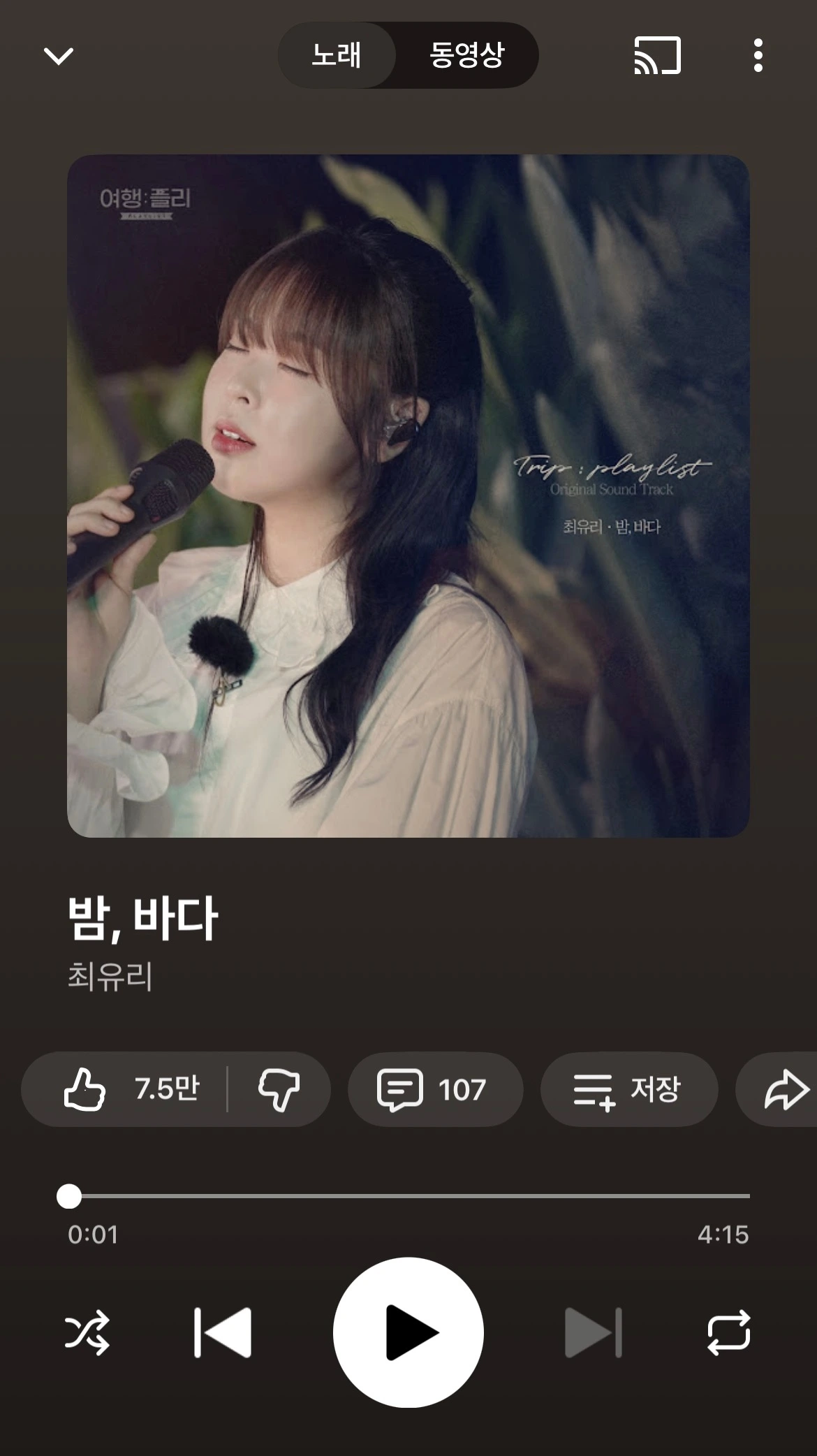 벌써 2년 전이다. 이제는 최유리의 <밤, 바다>를 자주 듣지는 않는다. 그러나 가장 좋아하는 노래가 무엇이냐고 누군가 물을 땐, 난 어김없이 이 노랠 들려준다. 주륵 주륵 흘린 마음에 모든 이유가 다 들어있다.