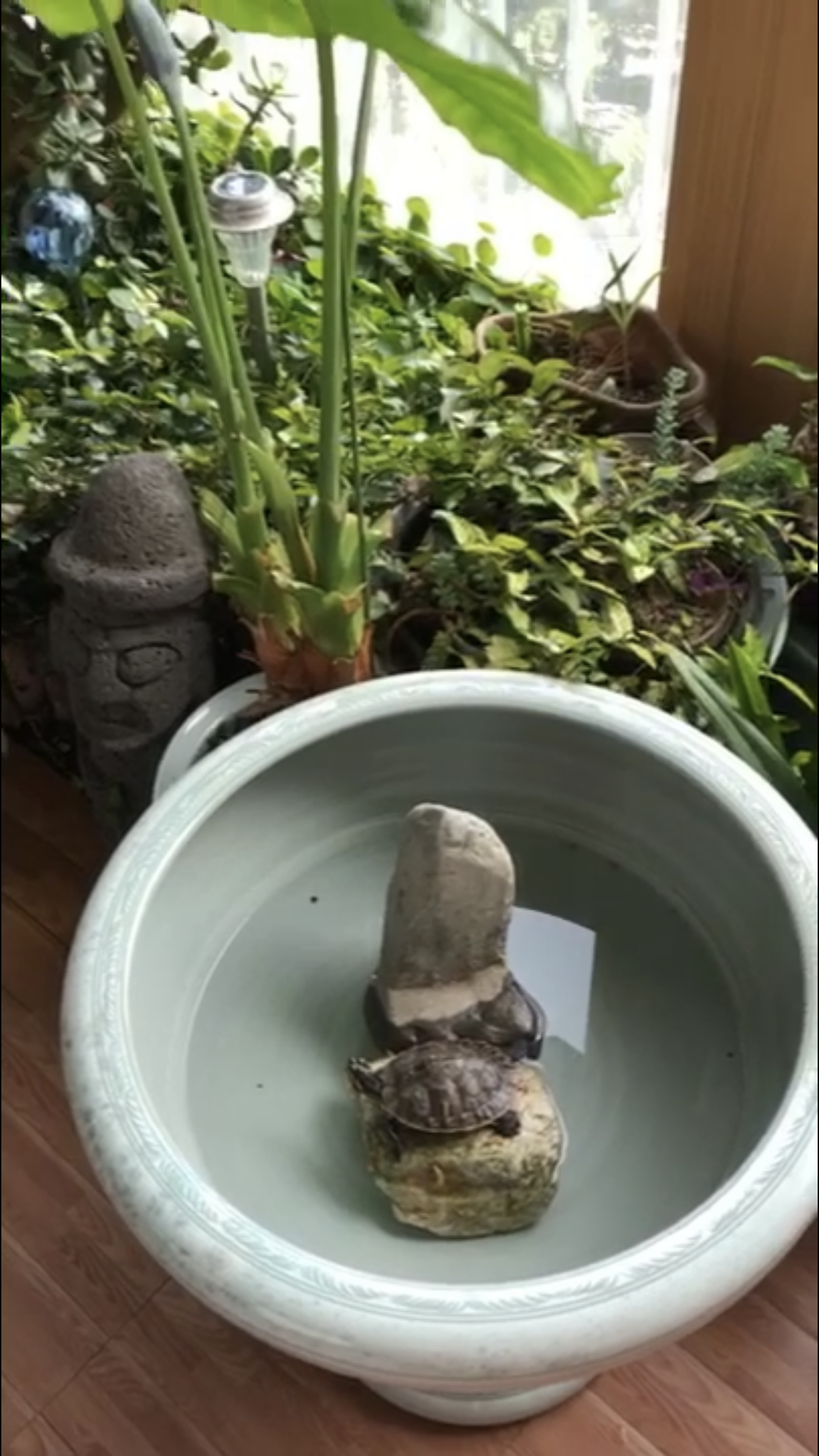 우선 급한 대로 집에 있던 도자기 분수에 물을 채워 넣었다.