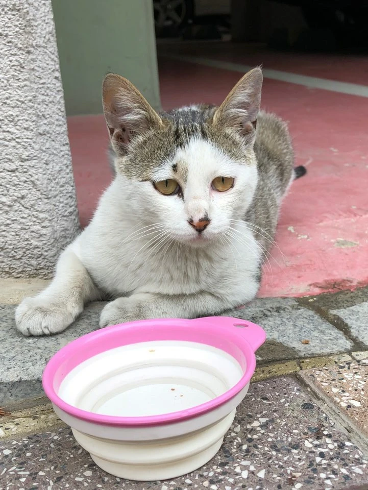 안타까운 마음에 작은 알갱이의 고양이 사료와 물을 주기 시작했다.