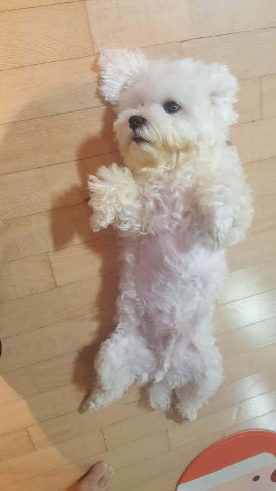 남편이 ‘엎드려’ ‘뒹굴어’ ‘손’ 이런 것을 가르칠 때마다 하지 못하게 말렸다.