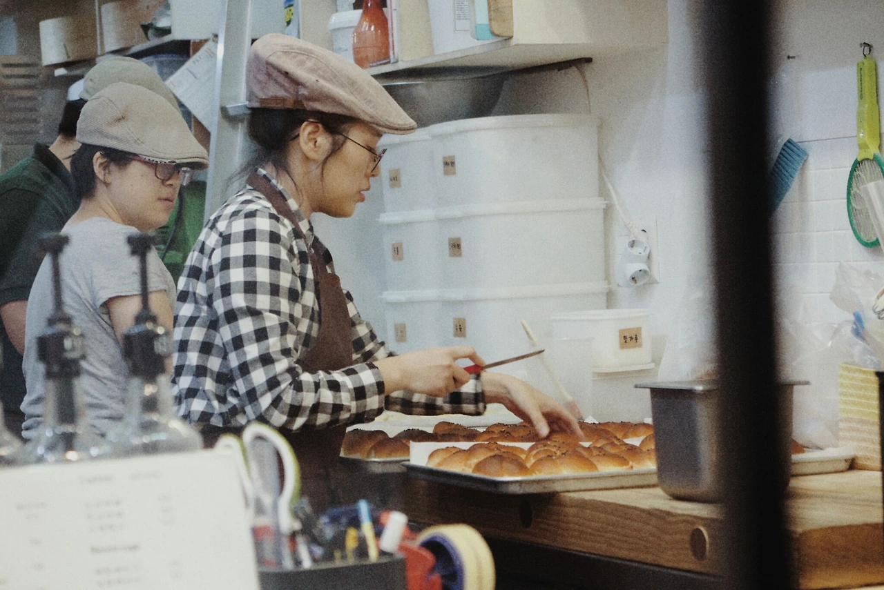 직원들의 손길이 아주 분주하다. 빵 가르고 팥소 넣는 일이 일사천리로 진행된다. 팥소 채우기를 마친 직원들은 단팥빵 개수를 체크했다. 그리곤 우리 쪽으로 다가와 양해를 구했다. 개수가 부족해 1인당 1개씩만 살 수 있다는 것. 애초에 1개만 살 예정이라 나는 크게 개의치 않았지만 아주머니들은 다시 구시렁대었다.