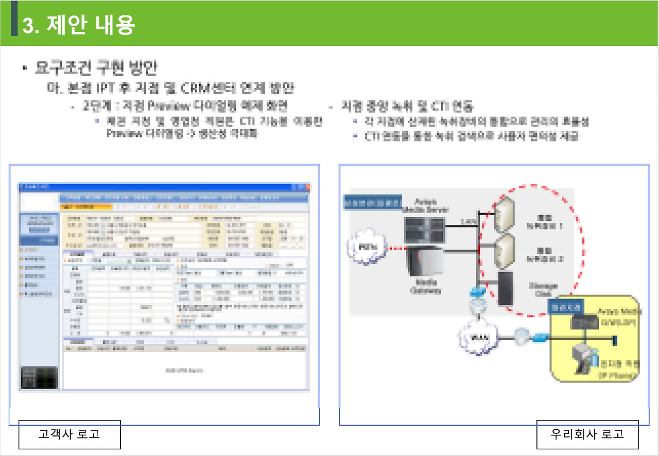 필자가 예전 을의 입장에서 제안서를 썼던 경험에 비춰보면 아래와 같다.