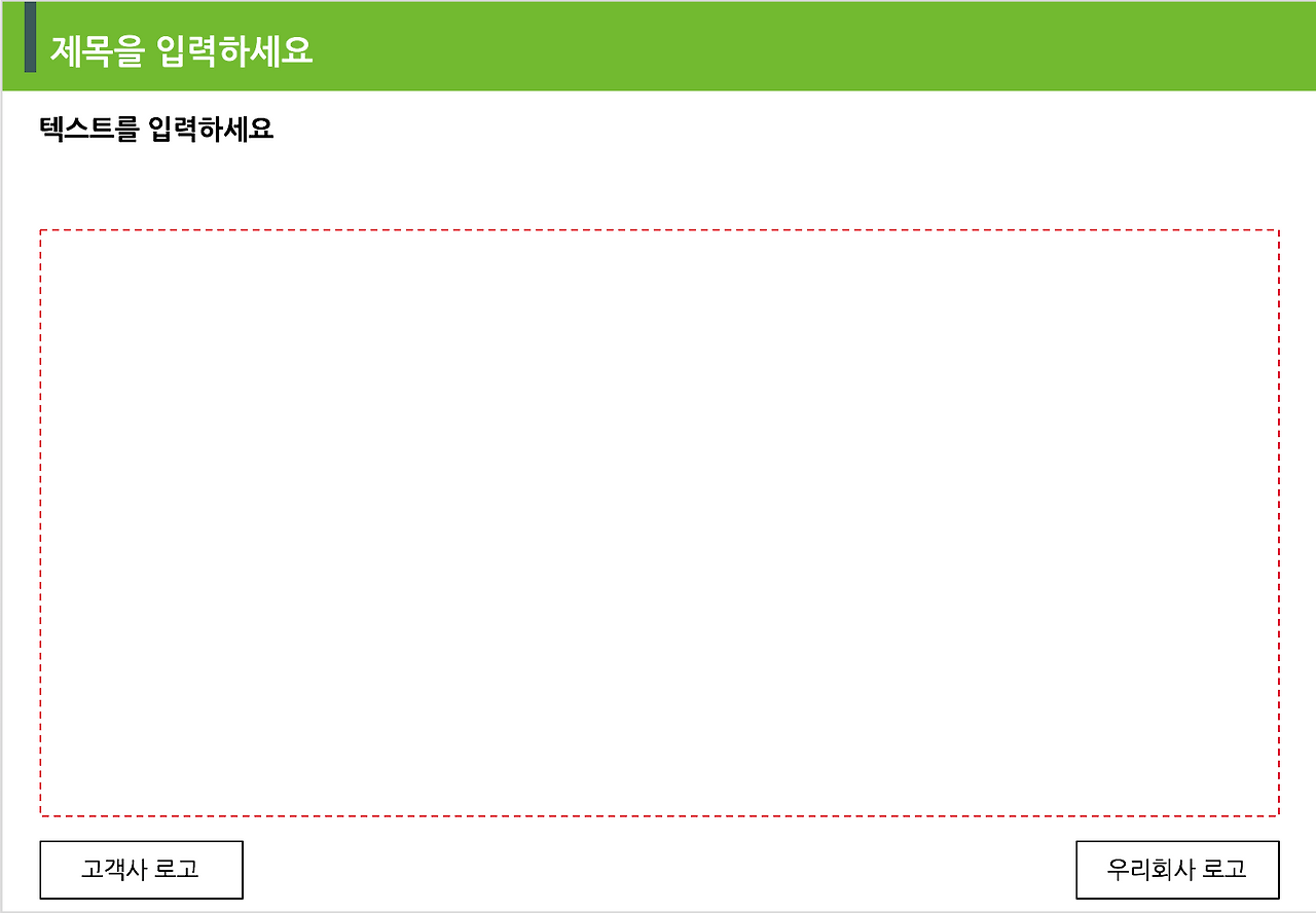 PPT템플릿의 마스터페이지에서 여백제한선을 이용하여 슬라이드를 작성하면 아래와 같이 통일된 여백공간을 품은 PPT를 만들 수 있다.