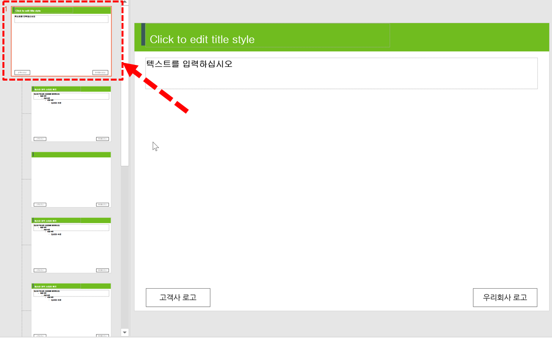 아래 그림과 같이, 작업하기 전에 PPT템플릿을 잘 준비하는 것이 좋다.