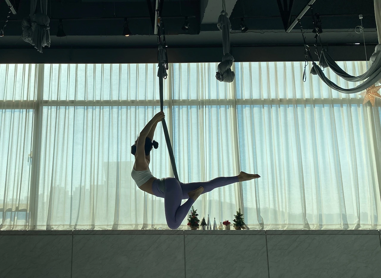 해먹을 풀면서 내려와 또 다른 동작과 이어지면 땀이 한 바가지다. 그 자체로 근력과 유산소 운동이다. 동작을 잘 따라해야 운동이지, 말 길 못 알아듣고 풀면 덫에 걸린 동물 꼴 된다. 해먹에 발목 하나 잘못 걸려들면 푸는 건 노동이다. 덫에서 탈출하는 게 힘들어서라도 선생님 말에 정신 바짝.