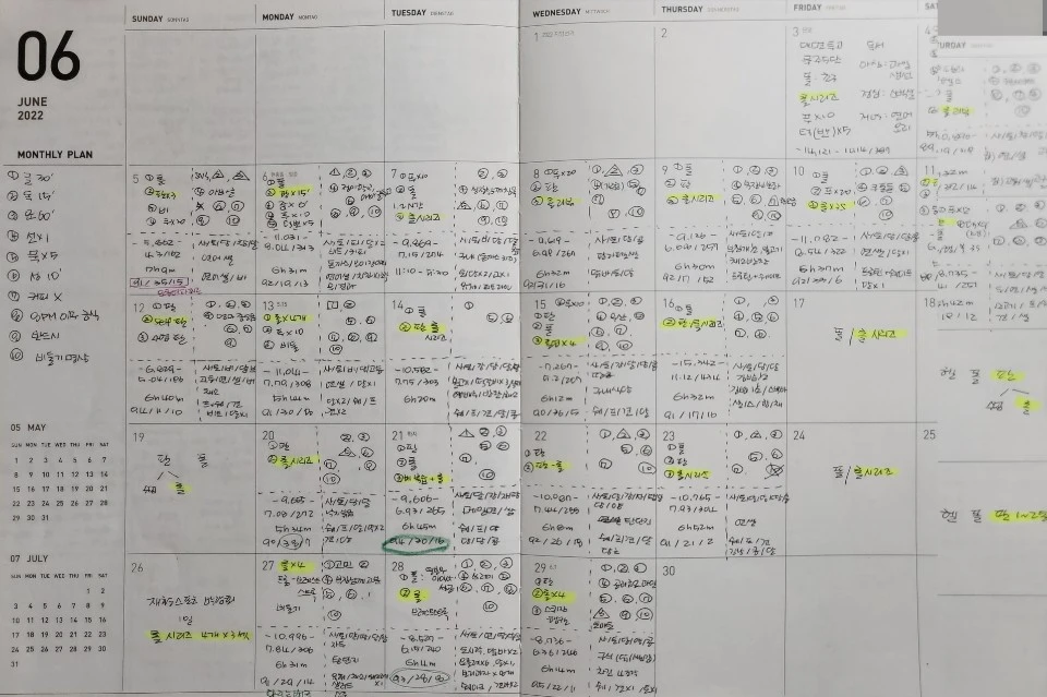 6.1일부터 하루도 빠짐없이 자기 전에 매일 10번이상 '롤오버' 시리즈를 연습했다(취중에도). 뒤에서 누가 밀어주었음, 앞에서 누가 팔을 당겨 주었음, 척추의 모자람을 목과 어깨, 허벅지가 보상하느라 결리고 뻐근하고 '때려치워 말어'의 독백이다가,