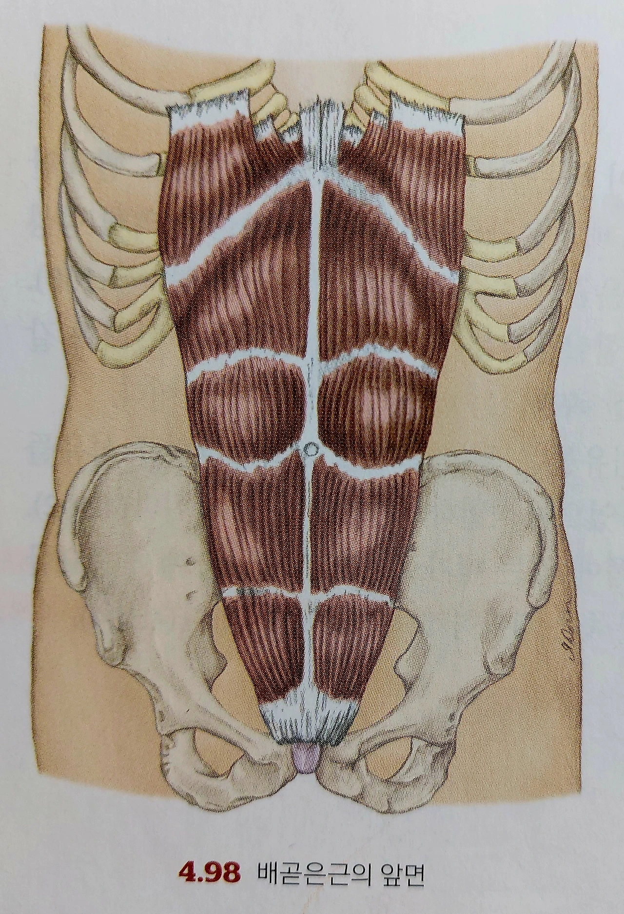 마지막 복근은 딱 봐도 알 수 있는 배곧은근(복직근)이다.