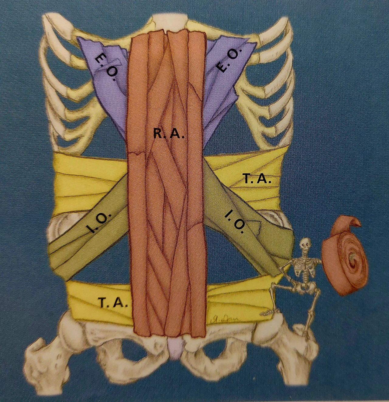 복근은 네 개의 근육으로 되어 있다. 갈비뼈와 골반을 연결하는 어마어마한 통로임에도 ‘식스팩’으로 수박 겉만 핥는 추세다. 네 개의 근육은 외풍을 막아내듯이 가로, 대각선, 세로로 겹겹이 잘도 지어놓았다. '색즉시공공즉시색'이라 했거늘. 가장 중요함에도, 보이지 않고 느껴지지 않는, 찬밥신세인 복근부터 배를 갈라본다.