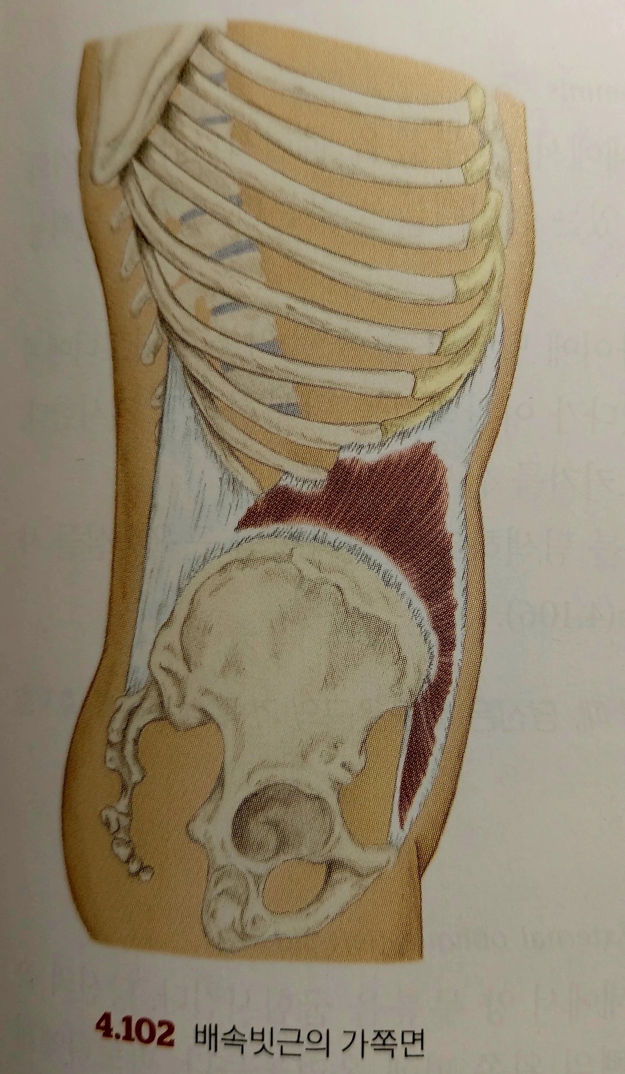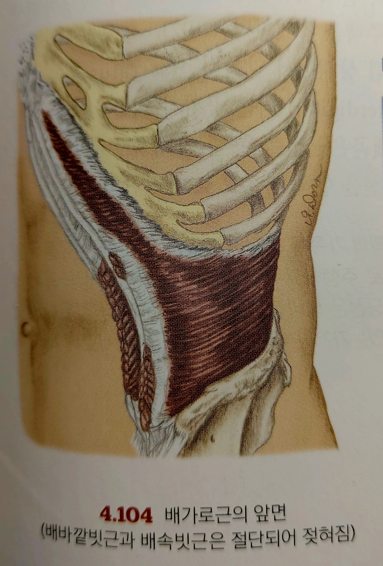 그 위로 안쪽빗근(내복사근)이 덮힌다.