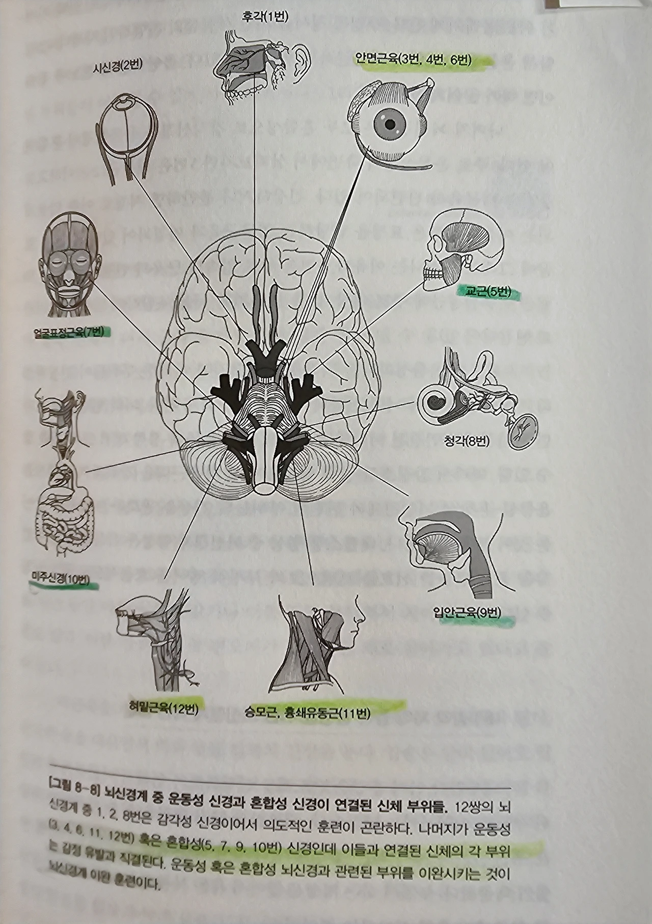 뇌신경 12개 중 밥알 씹으면서 득템할 수 있는 건 교근(5번), 얼굴표정근육(7번), 입안근육(9번), 미주신경(10번), 혀밑근육(12번)이다. 대부분 감각신경과 운동신경이 통합된 신경이다(12번 제외). 맛있는 걸 먹으면서 이렇게 거저 받는 게 어디인가.