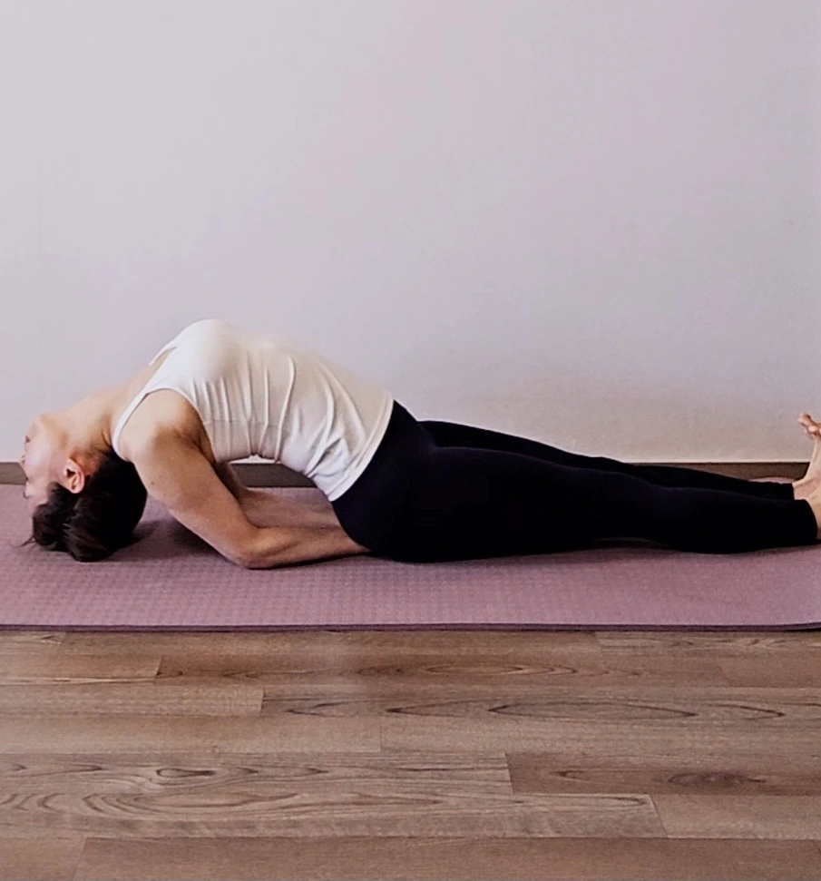 두 팔은 엉덩이 밑에 쏙 감춘다는 듯이 밀어 넣고 두 발은 몸쪽으로 발목을 당겨 호흡과 함께 내가 가능한 범위까지 목을 뒤로 제쳐 그 상태에서 목구성(성대) 자극 호흡을 합니다. 고정점은 두 팔꿈치와 발꿈치에요. 목근육과 등, 허리근육까지 퍼레이드로 자극되요.