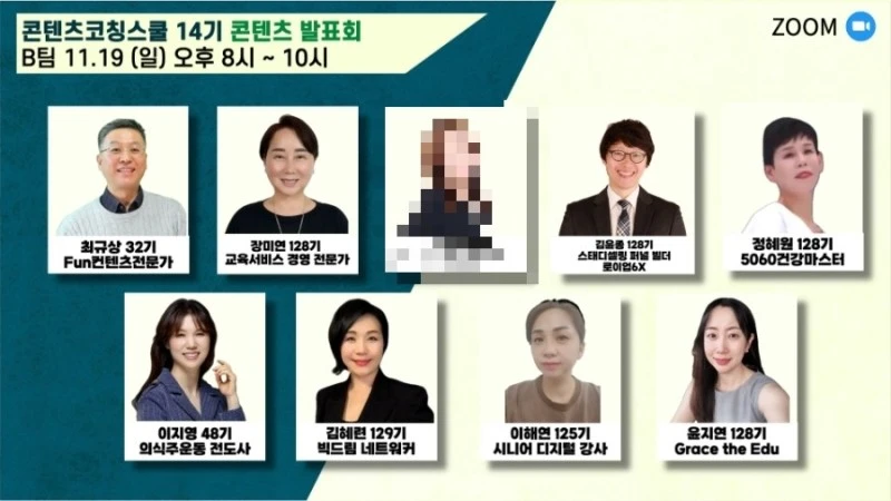 [23년 11월] 콘텐츠 코칭 스쿨 14기 콘텐츠 발표회 참가 신청서 김형환 교수의 콘텐츠 코칭 스쿨 12기 6주차 콘텐츠 발표회 일시 : 11.16(목) 오후 7시 ~ 9시 / 11.19(일) 오후 8시 ~ 10시
