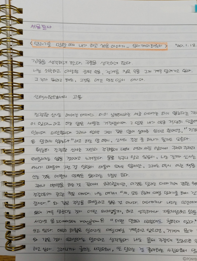 글쓰기 세포는 분열을 일으킨다. 번식력도 강하다. 고등학교 때 체육부장, 오락부장을 역임한 바와 같이 발발이가 엉덩이 힘까지 길렀다. 다른 일에도 인내심이 발휘된다. 닭이 먼저인지, 달걀이 먼저인지 모르겠지만 글쓰기와 달리기를 같이 하고 있다. 글쓰기와 운동은 세트 메뉴다. 본 메뉴, 사이드 메뉴 할 것 없이 글쓰기와 운동은 포크와 나이프를 든 양식 그 자체다. 습관으로 둘은 나란히 걷는다.