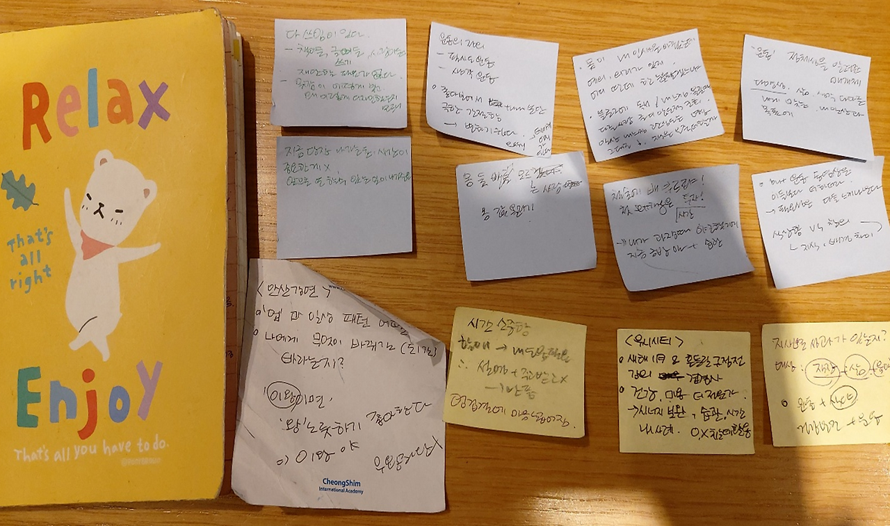 3년 전 아이와 함께 독서모임과 부모자녀세미나를 다니면서 뭔가를 적기 시작했다. 참여 못한 사람을 독자층으로 한 후기였다. 1년이 지나 서평도 적어 보았다. 손 하나 까딱 않던 시절 보단 나은데 어째 남 이야기만 하는 느낌이다. 남 이야기 으뜸이 회사 보고서다. 조직 방향성이 편집자인 글쓰기다. 나의 바깥 이야기에서 안으로 한 발짝 더 들어가 내면을 들여다보았다. 글쓰기 평수를 조금씩 넓혀 나갔다. 확장공사를 하다 보니 좀 더 깊이 파는 용기도 생겼다. 현장에 오지 못한 이들을 위해 썼던 글쓰기는, 마음속에 가지 못한 나를 위한 글쓰기가 되었다. 일기 쓰던 초등학생을 소환시켰다.