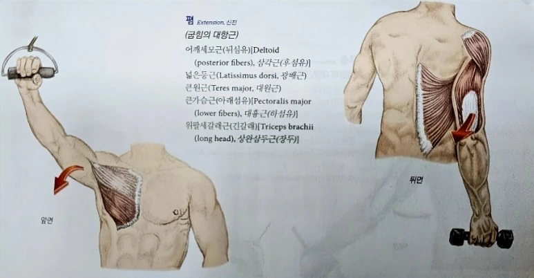 앞으로 팔을 들 때보다 더 많은 근육이 동원 되죠. 그것도 큼지막한 근육들이고요. 심지어 뒤에 붙은 근육 만이 아닌 앞의 가슴 근육까지 수축시키죠. 이리 주어진 게 많지만 무슨 미련에서인지 과거처럼 팔도 뒤로 보낼 일이 많이 없어요.