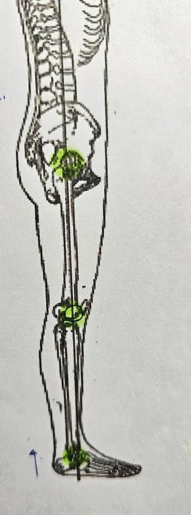 다리의 이상적 정렬은 정면에서 볼 땐 두번째 발가락, 무릎 가운데, 고관절 가운데가 일직선이고요. 옆에서 보았을 땐 복숭아뼈 살짝 앞, 무릎 가운데보다 약간 앞, 허벅지 대전자(불룩 튀어나온 뼈)이 수직인 상태에요.