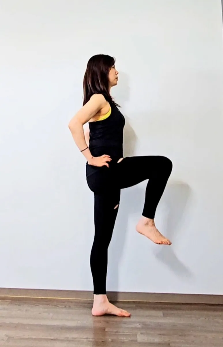 무릎을 올릴 땐 빠르게(단축성 수축), 무릎을 내릴 땐 천천히(신장성 수축) 하자. 늘어나면서까지 힘이 풀리지 않아야 근육을 톡톡히 챙기니까. 다음달 1일이 벌써 기다려지는 건 왜일까. 한발로 서서 기다릴까보다.