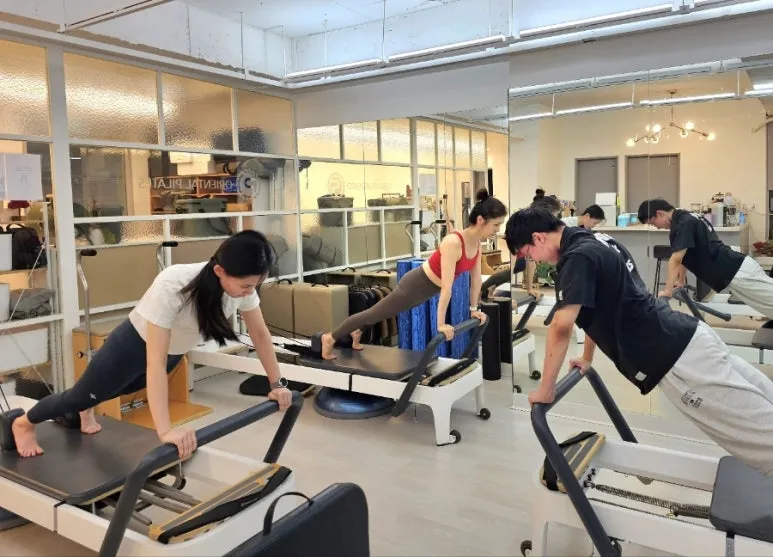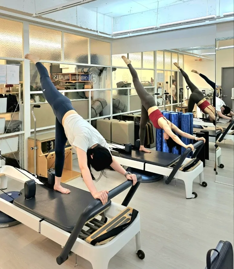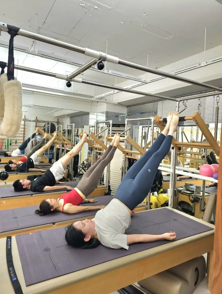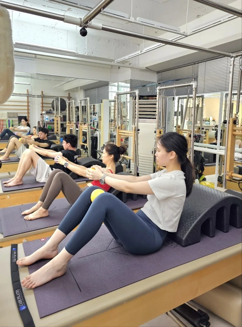 매트에서 복근으로 일어나기 어려운 사람들에게 캐딜락의 푸시 쓰루바를 이용해 훈련시키기도 해요.물론 저희 셋은 모두 빨딱 빨딱 일어나죠