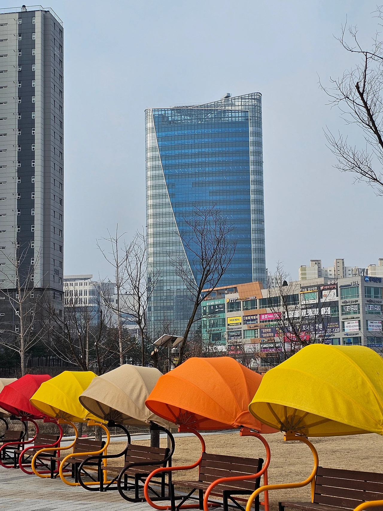 오르막과 내리막, 수변공원을 지나 회사 도착.
