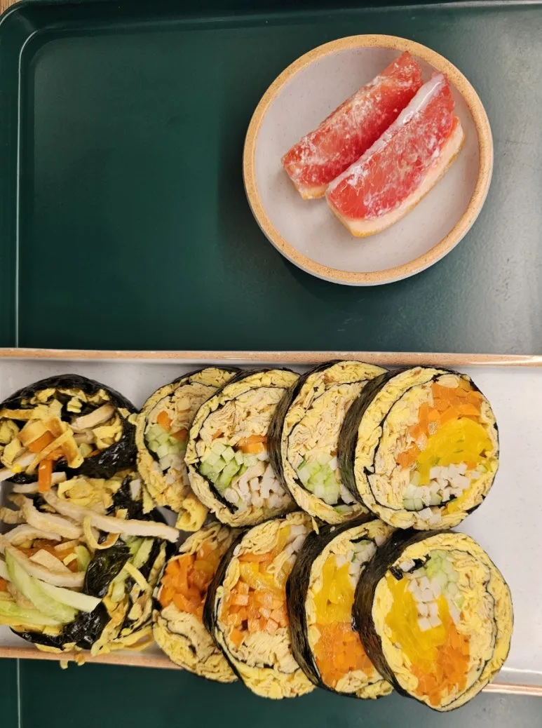 병아리콩이니 닭가슴살, 아보카도 등 뭘 더 넣은 김밥도 있지만 그럼 샐러드와 가격 차별화가 되지 않아 특별한 날 보상으로 쓸 셈이다. 기본기에 충실한 김밥, 그 자체 만으로도 충분히 맛있고 포만감이 오래 간다(잠들기 전까지 유지되니 퍽 다행이다).