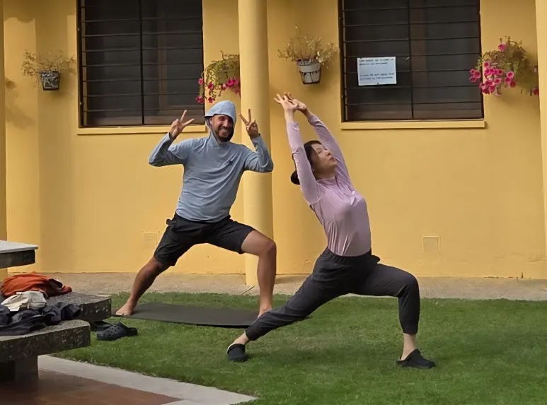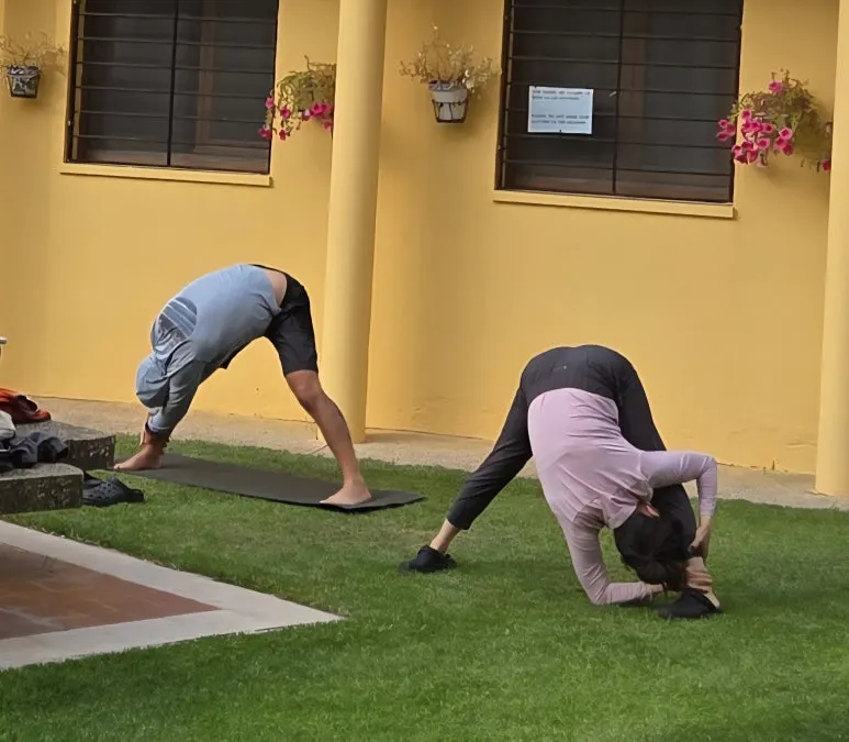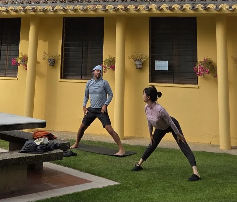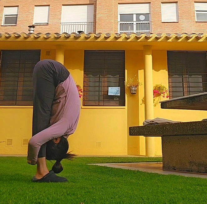 가방 메고 8-9시간 걸은 후 알베르게 마당에서 진행했다. 알베르게 실내는 많은 사람들이 함께 쓰거니와 비좁아 이 동작을 유지 하기가 어려웠다.