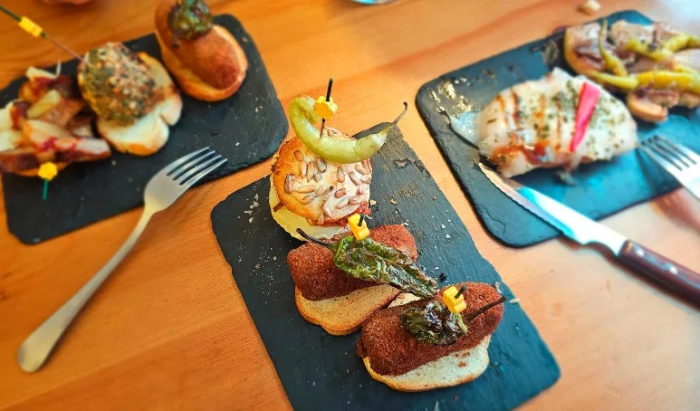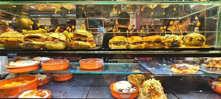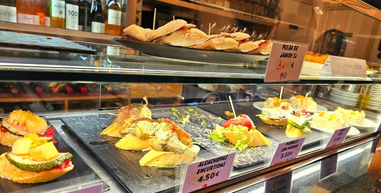 뭐든 잘 먹는, 호기심에 더 먹는 나. 로그로뇨에 온 이상 <타파스> 투어를 놓칠 순 없었다. 타파스는 바를 돌아다니며 맥주나 와인과 소량의 음식을 맛 보는 거다. 여러 맛 보기 위해 뭉쳐야 산다! 그 유명한 양송이 핀쵸 집부터 첫테잎 끊었다. 다들 장거리에 지친 데다 한 자리에 오래 앉아 먹는 걸 좋아해 많이들 못 드셨다. 기회주의자마냥 난 물 만났다. 음식 남는 꼴을 못 보니 더더욱. 먹을 땐 몰랐는데 내가 어지간히도 많이 먹었다. 자신을 돌아보려면 사진은 찍고 볼 일.