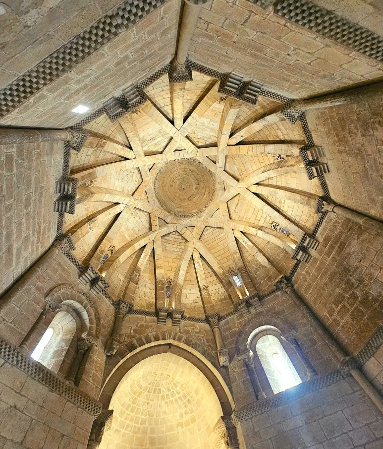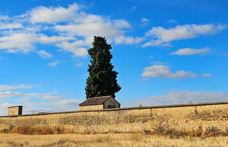 유네스코 세계유산으로 지정된 이 <토레스 델 리오의 성묘 교회>는 12세기 때 로마네스크 양식으로 지었다. 팔각형 건물과 별모양 천장(칼리팔 스타일)이 나를 빨아들였다. 순례자들을 지킨 기사단(성 요한 기사단 등)도 관련 있었다. 대성당에서 느끼지 못한 울림이 있었다. 작은 게 위대하다는 나의 선입견 인지. 아무튼 갈 길이 멀다. 잽싸게 나갔다.