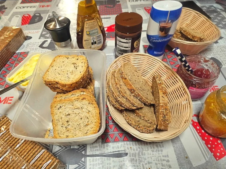 어제 묵은 알베르게는 아침을 4유로에 제공했다. 호기심과 식탐, 장거리 신경안정제 삼아 식사를 신청 했다. 과일이나 요거트가 없고 이른 시간대라 그런지 여성은 나 혼자였다. 주변 모두 남성이었다. 종류별로 놓인 잼을 굳이 바르지 않아도 빵 자체가 꿀맛이었다. 내 앞 바구니를 자꾸 비우니 빵을 세 번이나 리필해 주었다. 비스킷도 야금야금 없애니 아예 두 봉지나 갖다 주었다. 이 정도 맛이면 마트에서 개당 2유쯤 될 텐데 뽕을 여러 번 뽑았다. 많이 먹을수록 가벼워지는 이 느낌 뭐지? 시작이 좋다!