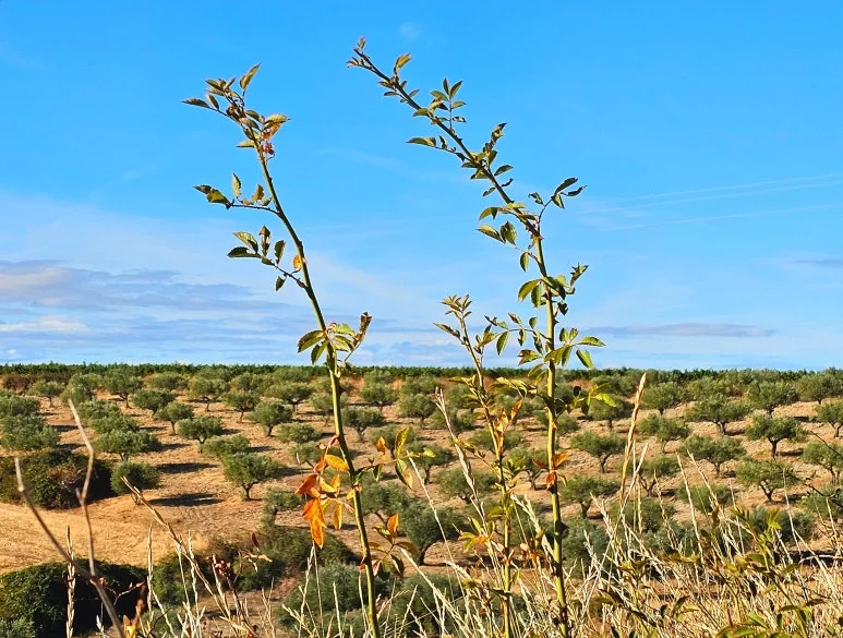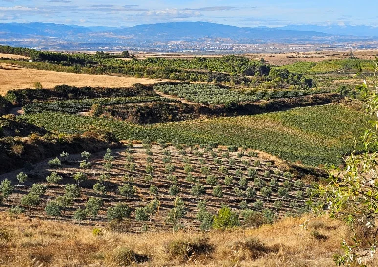 <라 리오하 주>는 스페인의 대표적 와인 생산지다. 포도밭 길을 예상은 했다만 서로 다른 존재로 '공존' 파노라마일 줄은 상상도 못했다. 몸을 녹였다 데웠다, 잠바를 입었다 벗었다, 바람과 산맥은 밀당 놀이를 했다. 포도밭을 일구는 트럭은 장난감 같지만 장난 아닌 풍경을 연출했다. 나무모자를 뒤집어 쓴 무덤도. '근묵자흑'이 아닌 '근초자노'가 될 지경이었다. 시골길은 막을 내리고 팔레스타인을 지지하는 빨간 스카프가 매달린 유네스코 거리를 지났다.
