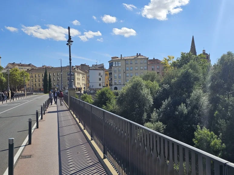 언니들에게 남몰래 흑심 품은 게 영 마음에 걸렸다. 발 담그는 물가에서 기다렸다. 안그래도 한 분은 무릎과 발톱이, 한 분은 발목이 좋지 않아 걸었다 쉬었다를 반복했을 텐데. 목 빼고 기다리다 등장하니 반가웠다. 좋다는 건 다 해 보자며 찬물에 발도 담갔다. 마음 때도 씻겼으리라. 로그로뇨 대성당이 저멀리 고개를 내밀었다. 마지막 건너는 다리, 우리 다리는 천근만근이었다.