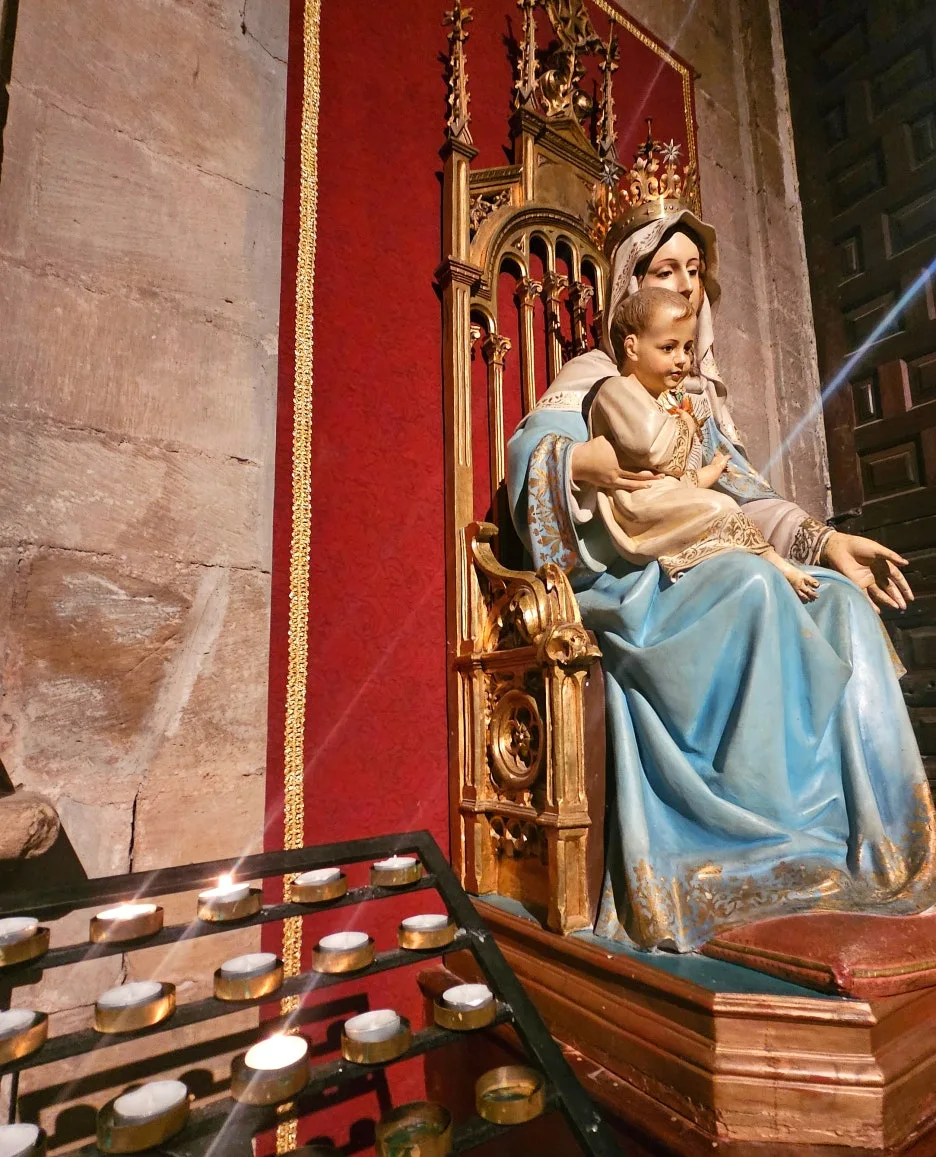 다시 돌아가 '성모승천성당'에 들어갔다. 등 따시고 배 부른 직후라 그런지 십자가 지고 가는 예수님 눈빛이 유독 눈에 들어왔다. 수많은 책, 수많은 문장 중 꽂히는 단 하나의 키워드처럼. 아들 키우는 엄마라서 아기 안은 성모상 앞에서는 이것저것 잴 것도 없이 초에 불을 켰다. 어제는 성당 앞에서 5유로를 줍더니 오늘은 가방 속 다 뒤져도 잔돈이라고는 초 값 0.5유로가 전부였다. 우연과 기적, 잘은 몰라도 딱딱 들어맞는 느낌이 좋다.