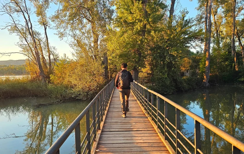 로그로뇨 시내외곽을 빠져 나갔다. 산미겔 공원을 지나 다리 건너 그라헤라 저수지까지 아침운동 하는 남성들이 많았다. 단체 티셔츠를 입고 달리는 젊은 열기가 그나마 찬공기를 막아 주었다. 자갈길을 걸어오다 포장도로를 걸으니 길을 내어준 조상에 감사했다. 피레네산맥에서 보던 소나 양도 이 길 한 번 걸으면 발에 흙 묻히기 싫을 듯. 포장도로는 흙길보다 확실히 지면반발력이 좋았다. 흙길에서보다 뒷발질을 덜 힘차게 해도 되었다.