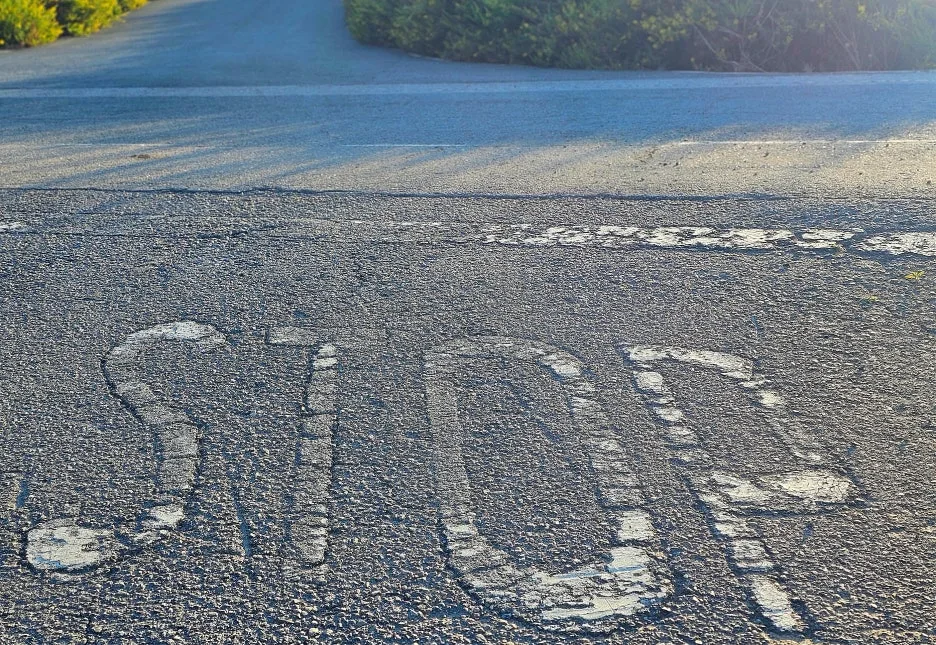 철조망 갓길을 지났다. 철조망을 보면 저 너머에 시선 두기 마련인데 철조망 자체에 나뭇가지로 십자가를 끼운 것도 흐뭇했다. 어제는 다리가 빨강이더니 오늘은 파랑이었다. 파랑은 빨강보다 강렬했다. 우리나라 육교와 남모르게 비교 했다. 찻길을 건넜다. 바닥에 'STOP'이 크게 써 있었다. 드러누운 STOP은 세운 STOP보다 선명 했다. 일단 멈춰 심호흡을 하게 했다. 인생 들입다 내달리지 말라는 경고와 함께 시골길로 안내했다. '천천히'는 순례길에서 한참 떨어진 모퉁이 집까지 시선을 멈춰 세웠다. 굴뚝 안테나의 잔근육까지 보였다. 유명세에 거대한 목표보다 무심코 지나친 작은 것 하나가 위대하게 느껴지는 순간이었다.