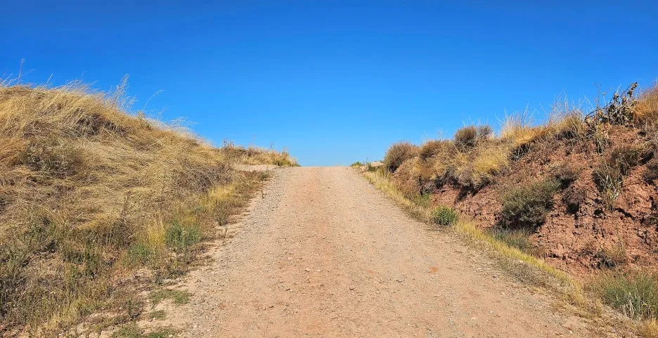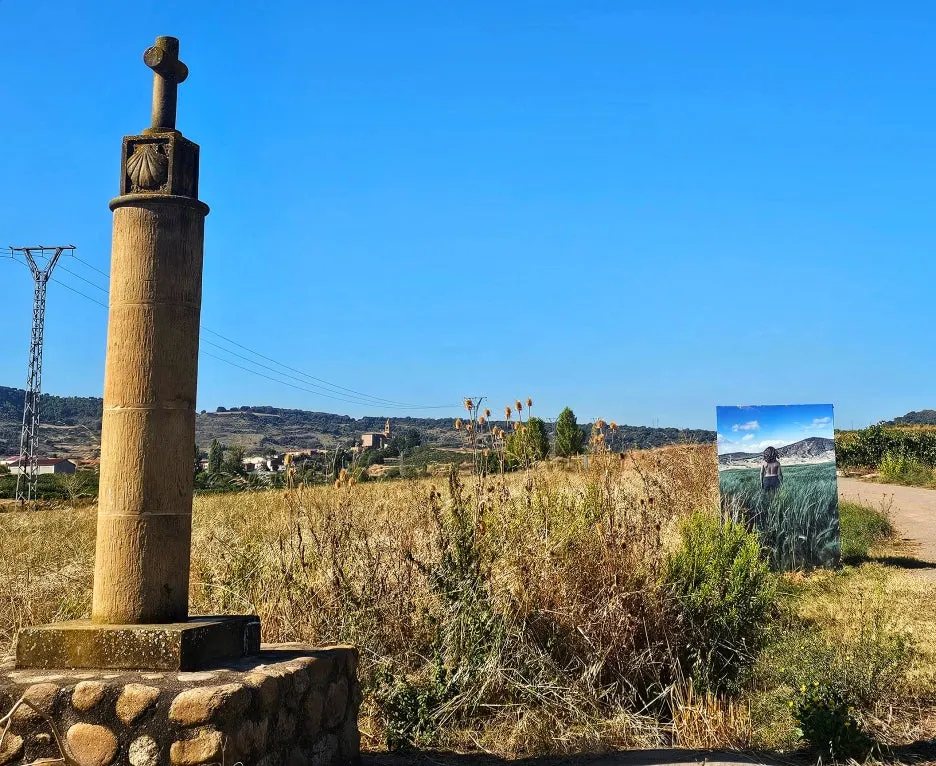 오늘 목적지인 나헤라까지 가는 길은 두 개였다. 다들 갈등인지 경로 표지판 앞에 사람들이 모여 있었다. 왼쪽은 돌아가는 정통길 <벤토사>, 오른쪽은 <나헤라>까지 직진코스 대안길이었다. 아침에 아스팔트 맛도 봤겠다, 그래도 왼쪽! 정통길은 시골길인 데다 바가 있다. 도로를 깔아 준 선구자보다 길을 먼저 밟은 선구자를 따르자! 직진코스에도 바가 있었다면 동공이 흔들릴 뻔 했다. 오른쪽을 택한 사람들이 많아 왼쪽은 마치 나를 위해 깔아 놓은 길 같았다. 살다 보니 빨리 가려다 돌아가는 경우가 참 많았다. 직진코스에서도 놓치고 지나친 게 많아 돌아가기 일쑤였다. 아름다움은 인생 우회로에 있었다. 길에도 전시작품이 있었다.